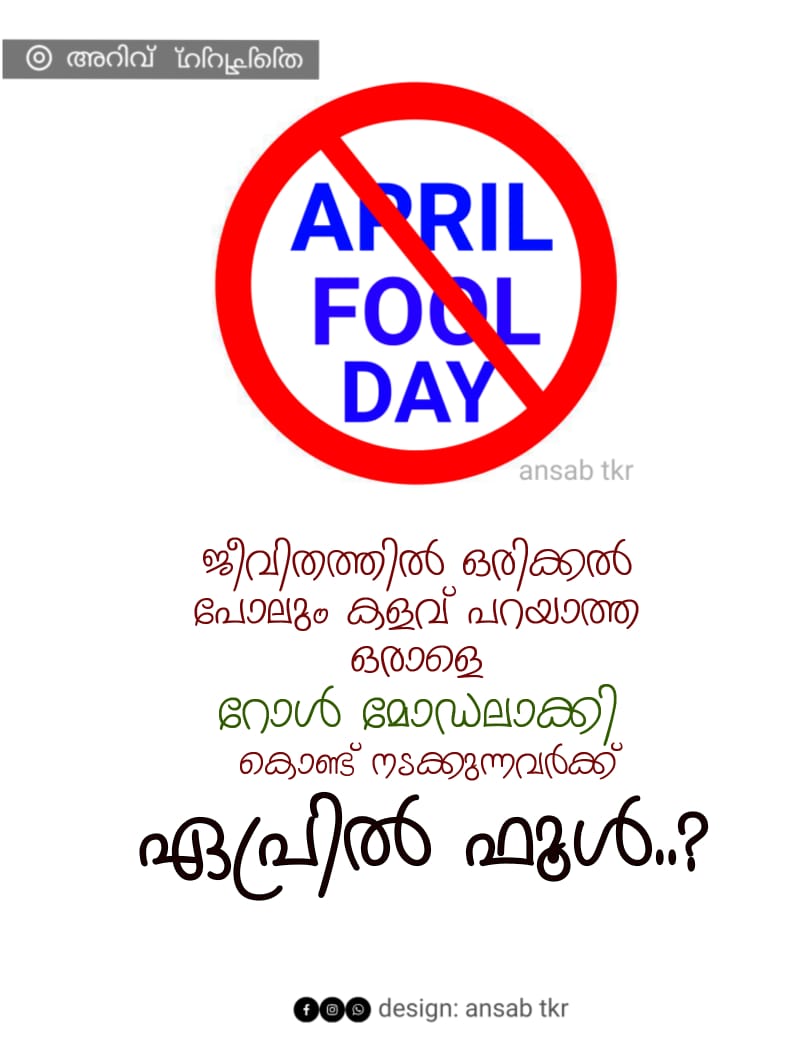 ഇന്ന് ഏപ്രിൽ 1. നമ്മൾ പലരും സ്വയം ഫൂളു(വിഡ്ഡി) കളായി വേഷം കെട്ടുന്ന ദിവസം. എല്ലാ കാര്യങ്ങളിലുമെന്ന പോലെ ഈ വിഷയത്തിലും 'പടിഞ്ഞാറോട്ട് തിരിയാനാണ്' നമുക്ക് താൽപര്യം. ഈ ഒരു ദിവസം കളവ് പറയുന്നതും പ്രചരിപ്പിക്കുന്നതും അനുവദനീയമാണെന്ന് വിശ്വസിക്കുന്നവരാണ് പലരും. ഏതെങ്കിലും ഒരു ദിവസം പോയിട്ട്, ജീവിതത്തിലെ അണു നിമിഷത്തിൽ പോലും കളവ് പറയരുതെന്ന് കർശനമായി നിഷ്കർഷിക്കുന്ന മതത്തിൻ്റെ അനുയായികളാണ് നാം. കളവ് പറയുന്നത് ഇസ്ലാം നിഷിദ്ധമാക്കിയിരിക്കുന്നു. സ്രഷ്ടാവിനും സൃഷ്ടികൾക്കും ഒരു പോലെ വെറുപ്പുണ്ടാക്കുന്ന സ്വഭാവമാണ് കളവ് പറയൽ. നബി(സ്വ) ഏറ്റവും വെറുത്തിരുന്ന സ്വഭാവവും അത് തന്നെ. അവിടത്തെ പ്രിയതമ ആയിശ ബീവി (റ) പറയുന്നു: നബി(സ)ക്ക് ഏറ്റം വെറുപ്പള്ള സ്വഭാവം കളവ് പറയലായിരുന്നു. ആരെങ്കിലും അവിടത്തോട് ഒരിക്കൽ കളവ് പറഞ്ഞാൽ, അയാളതിൽ നിന്ന് തൗബ ചെയ്ത് മടങ്ങിയിരിക്കുന്നു എന്ന് ബോധ്യമാകുന്നത് വരെ, അയാളോടുള്ള നീരസം അവിടത്തെ മനസ്സിലുണ്ടാകുമായിരുന്നു. കൈപേറിയതാണെങ്കിലും സത്യം മാത്രം പറയുക എന്നാണ് പ്രവാചകാധ്യാപനം. കളവ് പറയുന്നത് കപട വിശ്വാസിയുടെ സ്വഭാവമാണെന്നാണ് ഇസ്ലാമിൻ്റെ താക്കീത്. 'ഏപ്രിൽ ഫൂൾ' എന്ന അത്യാചാരം ഉണ്ടായതെങ്ങനെ എന്ന വിഷയത്തിൽ പല അഭിപ്രായങ്ങളുണ്ട്. അത് എന്തായിരുന്നാലും ഒരു മുസ്ലിമിന് ഒരു കാരണവശാലും ആചരിക്കാൻ കഴിയുന്നതല്ല ഈ വിഡ്ഡിത്തം. തമാശക്കല്ലേ എന്നാണ് പലരും നിസ്സാരവൽക്കരിക്കാറുള്ളത്. തമാശക്കാണെങ്കിൽ കളവ് പറയാമെന്ന് ആരാണ് ഇവരോട് പറഞ്ഞത്! ആളുകളെ ചിരിപ്പിക്കാൻ കളവ് പറയുന്നവർക്ക് നാശമെന്ന് ഹദീസ്. അസത്യത്തിൻ്റെ ലാഞ്ചന കലരാത്ത, നിരുപദ്രവങ്ങളായ തമാശകൾ ആവാം, ഇന്നെന്നല്ല, എന്നും. കാര്യങ്ങളിലേറ്റം വലിയ കാര്യം വിളംബരപ്പെടുത്താൻ കടന്ന് വന്ന പുണ്യ നബി(സ) പോലും അത്തരം നർമങ്ങൾ പറയുകയും ആസ്വദിക്കുകയും ചെയ്തിരുന്നു. പക്ഷേ, അതിൽ അസത്യം കലരുമ്പോൾ വിഷയം ഗുരുതരമാകുന്നു. ഒരിക്കലും കളവ് പറയാതിരിക്കാനുള്ള, സ്വയം വിഡ്ഡി വേഷം അണിയാതിരിക്കാനുള്ള പ്രതിജ്ഞയെടുക്കാൻ നമുക്കീ ദിവസം ഉപയോഗപ്പെടുത്താം.