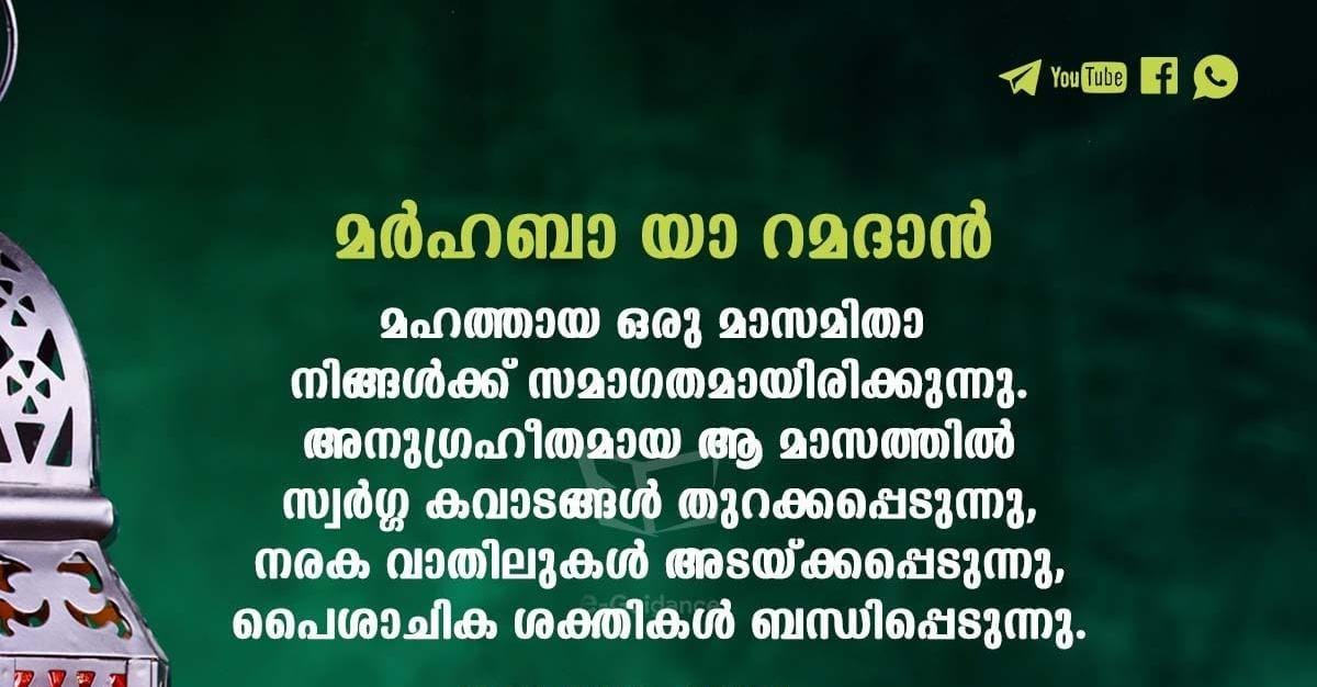 കാത്ത് കാത്തിരുന്ന അതിവിശിഷ്ടനായ അതിഥി ആഗതനായിരിക്കുന്നു. റമളാൻ മാസം കടന്ന് വന്നിരിക്കുന്നു. രണ്ട് മാസമായി തേടിത്തേടി നേടിയെടുത്തതാണ് നാം. അതിഥിയെ യഥാവിധി സ്വീകരിക്കേണ്ടതുണ്ട് നാം. സമംഗളം സ്വാഗതം ചെയ്യണം. ഹൃദ്യമായി യാത്രയാക്കണം. അനുഗുണമായി ഉപയോഗിക്കണം. അനുകൂലമായി സാക്ഷി നിൽക്കണം. അതിന് നാം ഒരുങ്ങിയിറങ്ങിയേ മതിയാകൂ. സ്വർഗകവാടങ്ങൾ തുറന്ന് വെച്ച്, നരക വാതിലുകൾ കൊട്ടിയടച്ച് കരുണാവാരിധിയായ അല്ലാഹു നമുക്കായി കാത്തിരിക്കുന്നുണ്ട്. മർഹബാ അഹ്ലൻ വ സഹ്ലൻ യാ റമളാൻ! اللهم أهله علينا بالأمن والإيمان والسلامة والإسلام الله أكبر ولله الحمد