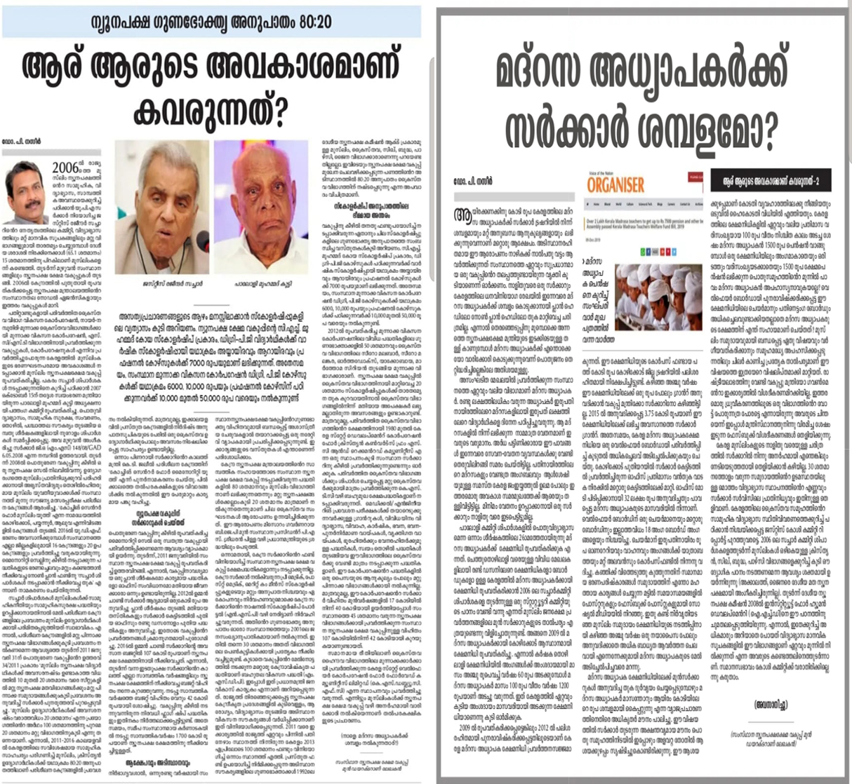സംസ്ഥാനത്തെ ന്യൂനപക്ഷ ക്ഷേമ പദ്ധതികളും ആനുകൂല്യങ്ങളും 80:20 അനുപാതത്തിൽ വിതരണം ചെയ്യുന്നത് അനുവദിക്കുന്ന ഗവ. ഉത്തരവ് കേരള ഹൈക്കോടതി റദ്ദാക്കിയതാണല്ലോ നിലവിലെ പ്രധാനപ്പെട്ട ചർച്ചാ വിഷയം? പതിവ് പോലെ, വിഷയം വർഗീയവൽക്കരിക്കാനും സമൂഹത്തിൽ ദ്രുവീകരണമുണ്ടാക്കാനുമാണ് തൽപരകക്ഷികൾ ശ്രമിക്കുന്നത്. യഥാർത്ഥത്തിൽ എന്താണ് വിഷയത്തിൻ്റെ മർമം? 1.2006 ൽ ഇന്ത്യയിലെ മുസ്ലിം സമുദായത്തിന്റെ സാമൂഹികവും സാമ്പത്തികവും വിദ്യാഭ്യാസപരവുമായ അവസ്ഥയെക്കുറിച്ച് ഒരു വിവരണം തയ്യാറാക്കുന്നതിനായി മൻമോഹൻ സിങ് പ്രധാനമന്ത്രിയായിരുന്നപ്പോൾ നിയോഗിച്ച ഒരു ഉന്നതാധികാര സമിതിയാണ് രജീന്ദർ സച്ചാർ സമിതി (The Rajinder Sachar Committee). സമിതിയുടെ കണ്ടെത്തൽ ഞെട്ടിക്കുന്നതായിരുന്നു: വിദ്യാഭ്യാസത്തിലും മറ്റ് മാനവിക സൂചകങ്ങളിലും മറ്റു വിഭാഗങ്ങളുമായി താരതമ്യം ചെയ്യുമ്പോൾ, ദേശീയ ശരാശരി നിരക്കിനേക്കാൾ (65.1 % ) 15 % പിറകിലാണ് മുസ്ലിംകൾ ! രാജ്യത്തെ ഹരിജനങ്ങളേക്കാൾ, ഗിരി ജനങ്ങളേക്കാൾ, ആദിവാസികളേക്കാൾ പരിതാപകരമായ അവസ്ഥ. പ്രബല ന്യൂനപക്ഷമായ മുസ്ലിംകളുടെ ഈ പിന്നാക്കാവസ്ഥ പരിഹരിക്കാനുള്ള വിവിധ ശുപാർശകളും സമിതി മുന്നോട്ട് വെച്ചു. 2. 2006 ൽ തന്നെ കേന്ദ്രത്തിൽ ന്യൂനപക്ഷ ക്ഷേമ വകുപ്പ് മന്ത്രാലയം നിലവിൽ വന്നു. തുടർന്ന് മുഴുവൻ സംസ്ഥാനങ്ങളിലും ന്യൂനപക്ഷ ക്ഷേമ വകുപ്പുകൾ വന്നു. എന്നാൽ, കേരളത്തിൽ മാത്രം വകുപ്പ് നിലവിൽ വന്നില്ല. പകരം, സച്ചാർ കമ്മിറ്റിയുടെ ശുപാർശകൾ നടപ്പിലാക്കുന്നതിനെക്കുറിച്ച് പഠിക്കാൻ പാലോളിക്കമ്മിറ്റിയെ നിയോഗിച്ചു. ഈ കമ്മിറ്റിയുടെ ശുപാർശകൾ അംഗീകരിച്ച സർക്കാർ അപ്പോഴും സ്വതന്ത്ര വകുപ്പ് രൂപീകരിച്ചില്ല. പകരം, പൊതു ഭരണ വകുപ്പിന് കീഴിൽ, ന്യൂനപക്ഷ സെൽ ഉണ്ടാക്കി. പിന്നീടത് സ്വതന്ത്ര വകുപ്പായി. 3. ഉദ്യോഗ രംഗത്തെ മുസ്ലിം പ്രാതിനിധ്യക്കുറവ് പരിഹരിക്കാനായി സൗജന്യ മൽസരപ്പരീക്ഷാ പരിശീലന കേന്ദ്രങ്ങൾ ആരംഭിച്ചു. ഇതിൽ 100 % വും പ്രവേശനം നൽകേണ്ടിയിരുന്നത് മുസ്ലിംകൾക്കാണ്. കാരണം , സച്ചാർ കമ്മിറ്റി റിപ്പോർട്ട് മുസ്ലിംകളുടെ മാത്രം പിന്നാക്കാവസ്ഥയെക്കുറിച്ചാണ്. എന്നാൽ, ഇതര വിഭാഗങ്ങൾക്ക് 20 % നൽകിയത് മാന്യതയും ഔദാര്യവുമാണ്. 4. വകുപ്പിൻ്റെ തനത് ഫണ്ട് ഉപയോഗിച്ച് നൽകുന്ന ഏതാനും സ്കോളർഷിപ്പുകളുടെ അവസ്ഥയും ഇത് തന്നെ. ആർക്കും മനസ്സിലാകുന്ന ഈ ലളിത യാഥാർത്ഥ്യം തിരിച്ചറിയാതെയാണ് കോടതി വിധി. ഈ യാഥാർത്ഥ്യം അവഗണിച്ചാണ് വർഗീയ പ്രചരണവും. നമുക്ക് അർഹമായ അവകാശങ്ങൾ നിഷേധിക്കാൻ ഗൂഢാലോചനകൾ നടന്നിട്ടുണ്ട്, നടക്കുന്നുണ്ട്. അതിനെതിരെ നാം ജാഗ്രത്താവുക, മഹാനായ സി.എച്ച്.പറഞ്ഞത് പോലെ, 'നമ്മുടെ അവകാശങ്ങൾ മുടിനാരിഴ വിട്ട് കൊടുക്കാതെ, അപരൻ്റെ അവകാശങ്ങൾ തലനാരിഴ കവരാതെ '. സംസ്ഥാന ന്യൂനപക്ഷ ക്ഷേമ വ